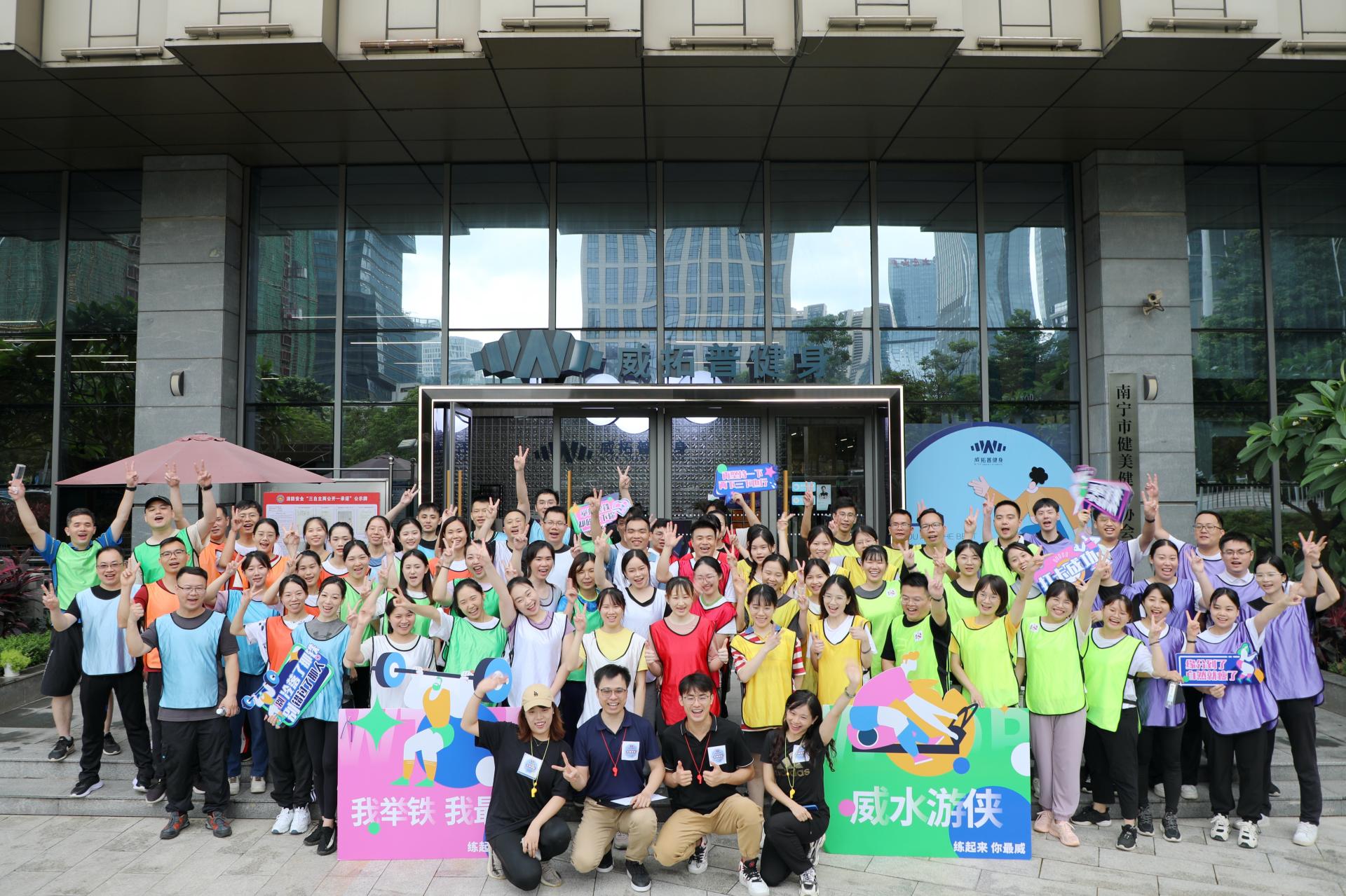 勠力同心,展示威寧風(fēng)貌。7月8日上午,新員工們來到廣西體育中心威拓普健身館開展團(tuán)隊素質(zhì)拓展活動,加速各團(tuán)隊之間的融合,強(qiáng)化團(tuán)隊協(xié)作、互幫互助的理念。本次拓展活動既有傳統(tǒng)類團(tuán)隊協(xié)作、斗智斗勇的環(huán)節(jié),更是借助威拓普健身館內(nèi)設(shè)施,開展科技化如“全息折返跑”、“全民動感單車”環(huán)節(jié)。活動結(jié)束后,新學(xué)員們參觀了廣西體育中心主體育場和泳游館,實地感受威寧的速度與品質(zhì),增加新員工的企業(yè)自豪感和對集團(tuán)穩(wěn)健且快速發(fā)展的信心。