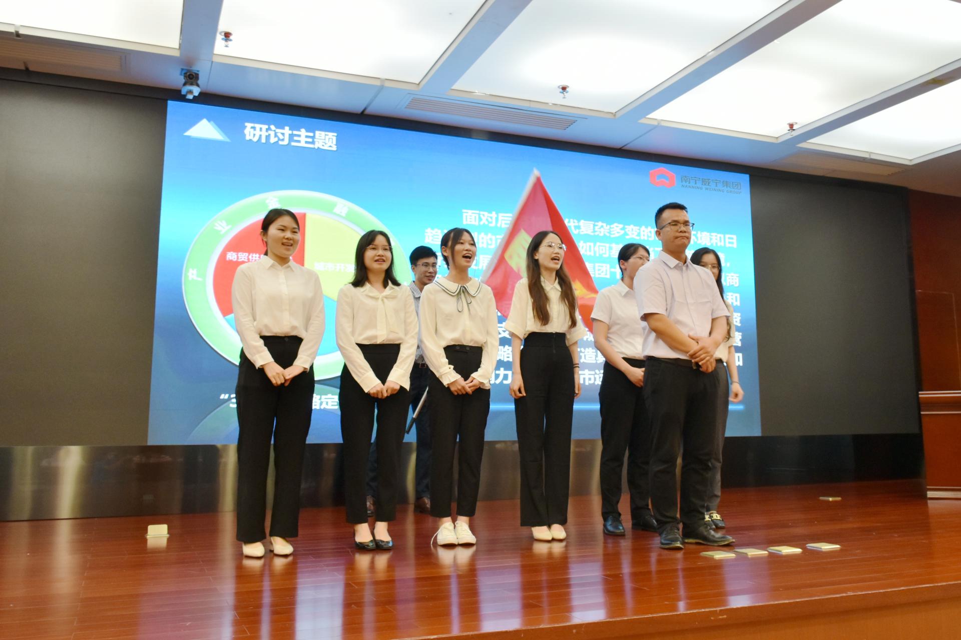 博采眾長,見證威寧新生代。7月8日下午,課題研討發(fā)布會在廣西體育中心新聞發(fā)布廳舉行,研討會邀請了集團(tuán)黨委副書記馬超毅、集團(tuán)公司中層代表、各監(jiān)管單位分管領(lǐng)導(dǎo)等11人擔(dān)任評委。學(xué)員們圍繞主題、結(jié)合熱點(diǎn),通過學(xué)術(shù)研討會、新聞聯(lián)播發(fā)布會、情景短劇、情景擂臺賽等多種形式,提出各自見解。研討會現(xiàn)場掌聲不斷,體現(xiàn)出威寧人敢于創(chuàng)新的精神風(fēng)貌和威寧新生代的不同凡響。