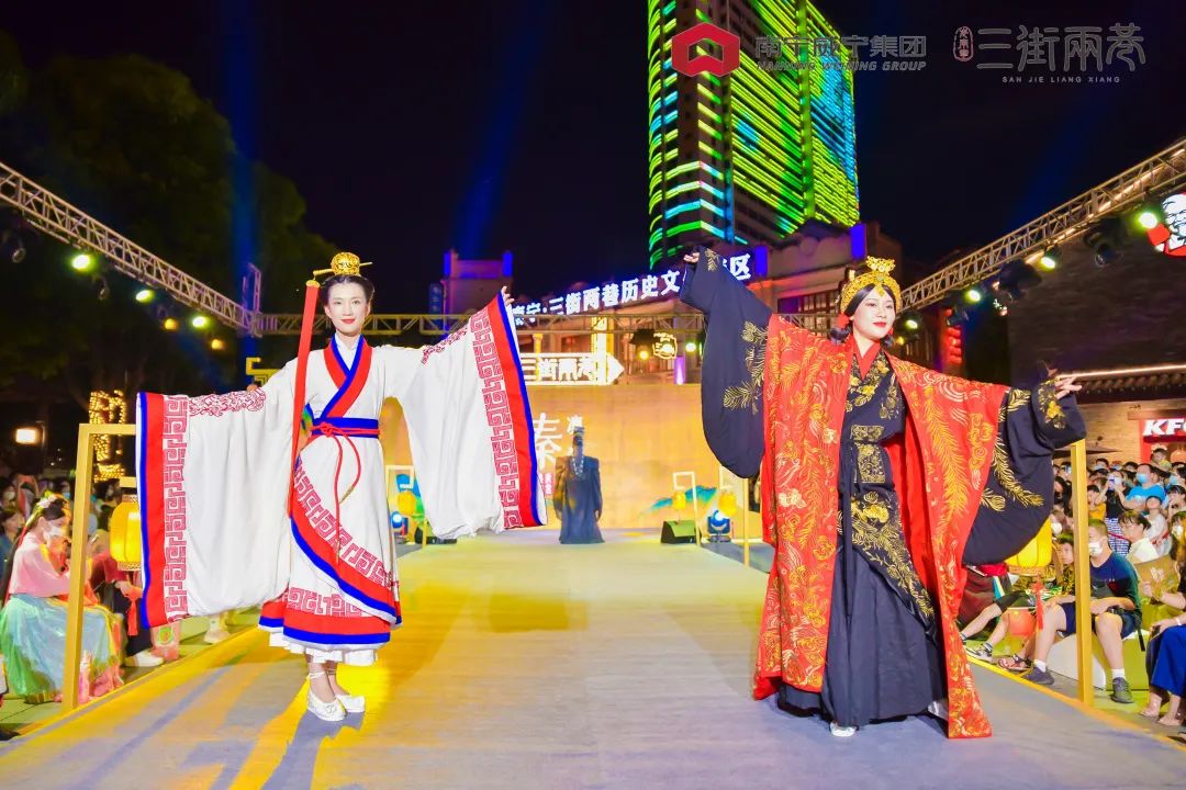 威邕城市運(yùn)營(yíng)開展頭腦風(fēng)暴,創(chuàng)新策劃舉辦活動(dòng)?!傍櫢ER門邕城盛市”三街兩巷二期新街開放暨倉(cāng)西門揭幕儀式系列活動(dòng)、三街兩巷新春嘉年華沉浸式國(guó)風(fēng)系列活動(dòng)、二期開街活動(dòng)暨首屆國(guó)風(fēng)文化節(jié)等大型主題活動(dòng)共計(jì)10余次,得到中央廣播電視總臺(tái)、廣西日?qǐng)?bào)、廣西電視臺(tái)、南寧市主流媒體等廣泛報(bào)道,獲得社會(huì)各界與廣大游客的廣泛關(guān)注。國(guó)慶期間,“三街兩巷首屆國(guó)風(fēng)文化節(jié)”活動(dòng),游客接待量超70萬人次,同比2021年國(guó)慶假期增長(zhǎng)40%,營(yíng)業(yè)額超5000萬元,同比2021年國(guó)慶假期增長(zhǎng)317%。主題活動(dòng)的成功舉辦,促進(jìn)了街區(qū)人流量、消費(fèi)量“雙量”提升,極大的提升了商戶的經(jīng)營(yíng)信心,促進(jìn)了招商工作的推進(jìn)。(圖5.三街兩巷2022年國(guó)慶活動(dòng))
