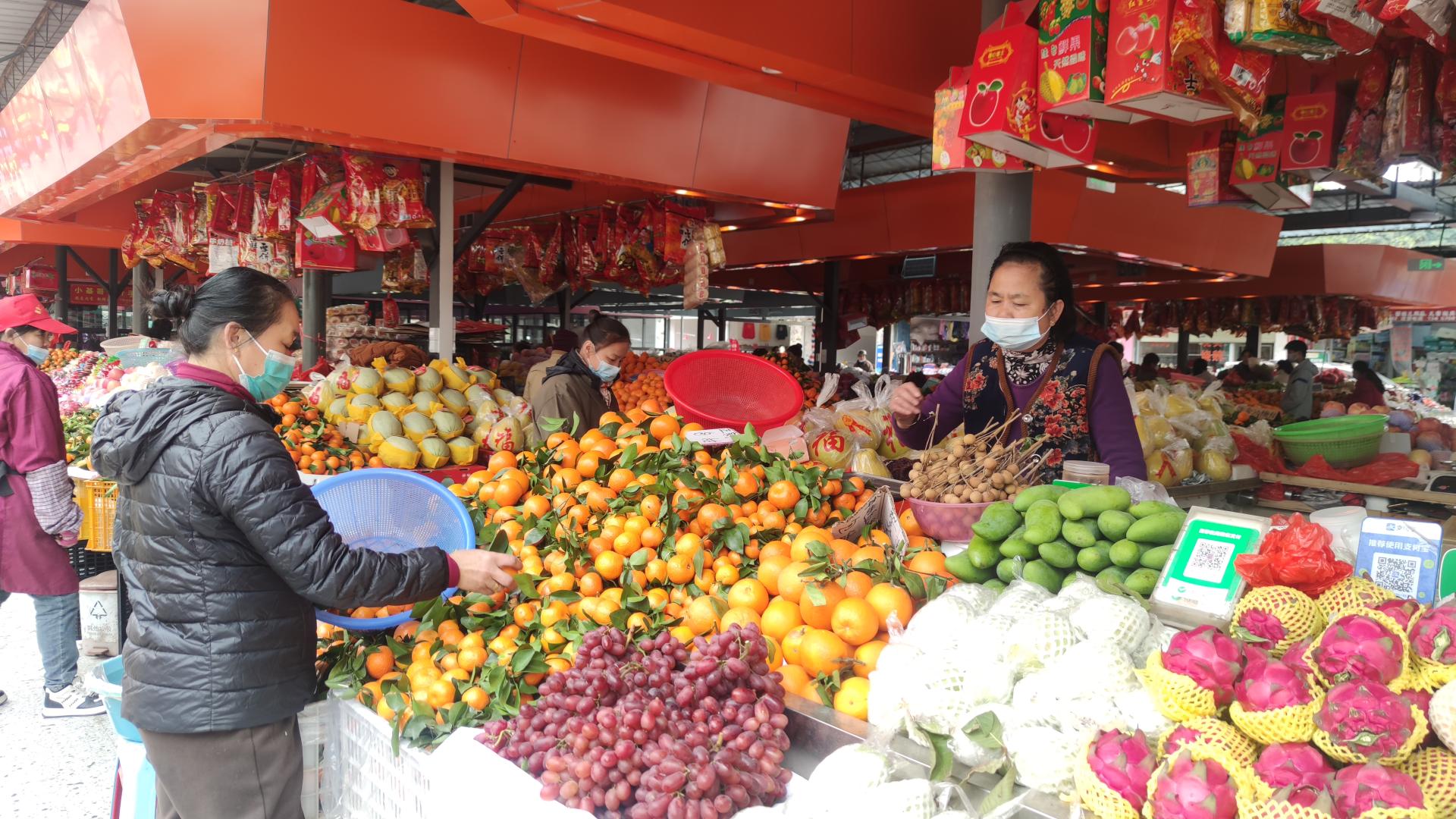 市民在威寧農(nóng)貿(mào)市場(chǎng)選購(gòu)水果
