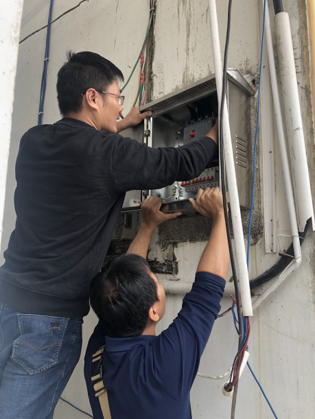 和華哥(左一)為村委更換電箱