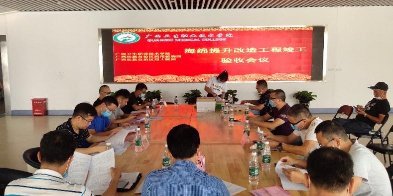 竣工驗收會現(xiàn)場2020年6月23日,由威寧房地產(chǎn)公司所屬威寧建投公司承建的廣西壯族自治區(qū)藥用植物園、廣西衛(wèi)生職業(yè)技術學院、廣西壯族自治區(qū)烈士陵園海綿提升改造工程項目順利通過竣工驗收。據(jù)悉,該項目總投資概算7359.17萬元,主要是對項目現(xiàn)狀進行海綿提升改造,生物滯留帶、黑臭水體改造,雨水濕塘、植草溝、透水瀝青路面、雨污分流改造和雨水回用等海綿化改造設計。因受到現(xiàn)場實際施工條件限制,該工程取消了黑臭