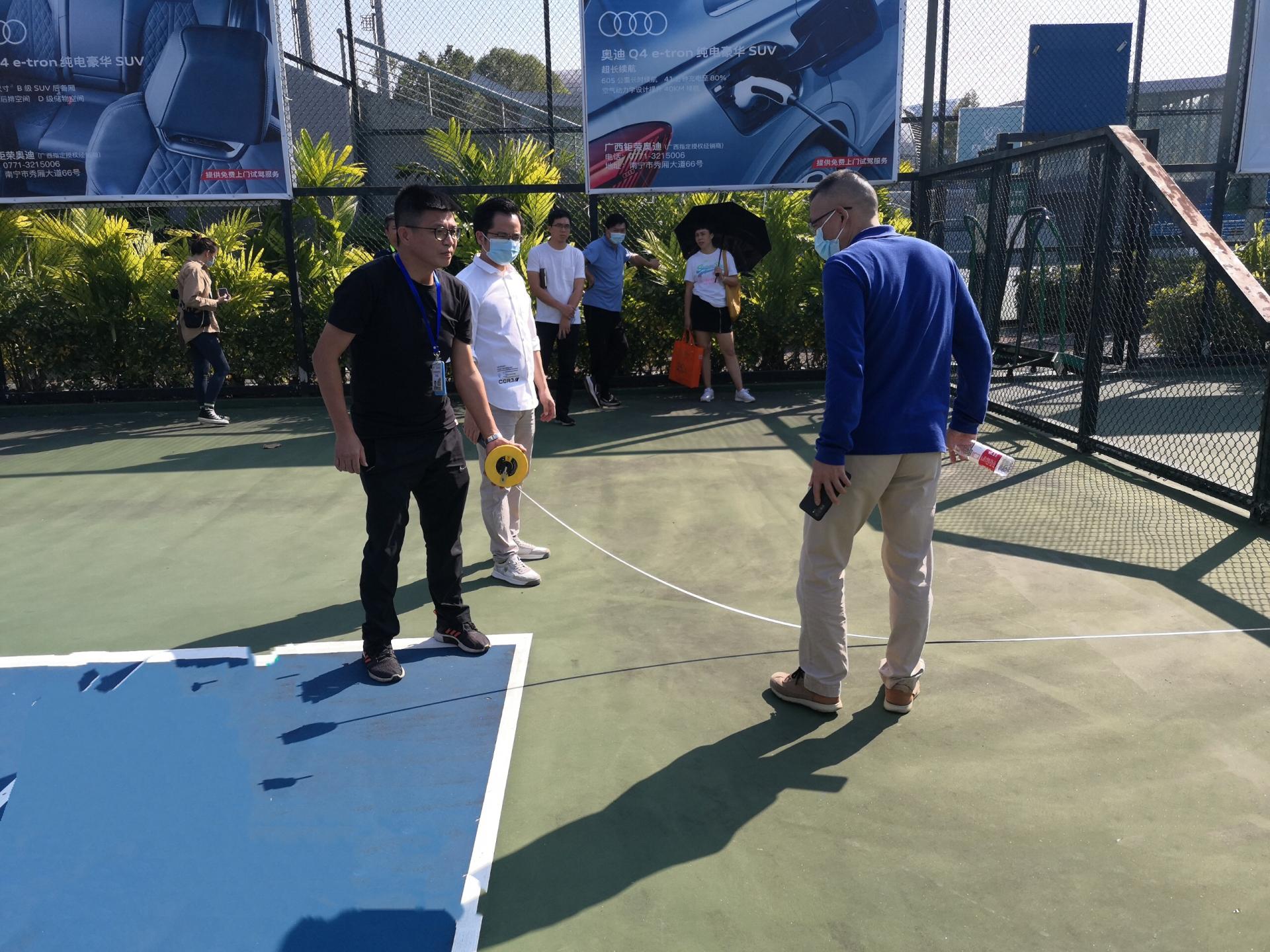 國家體育總局專家、自治區(qū)及南寧市執(zhí)委會相關職能部門人員到廣西體育中心考察網球中心場地及設施設備情況