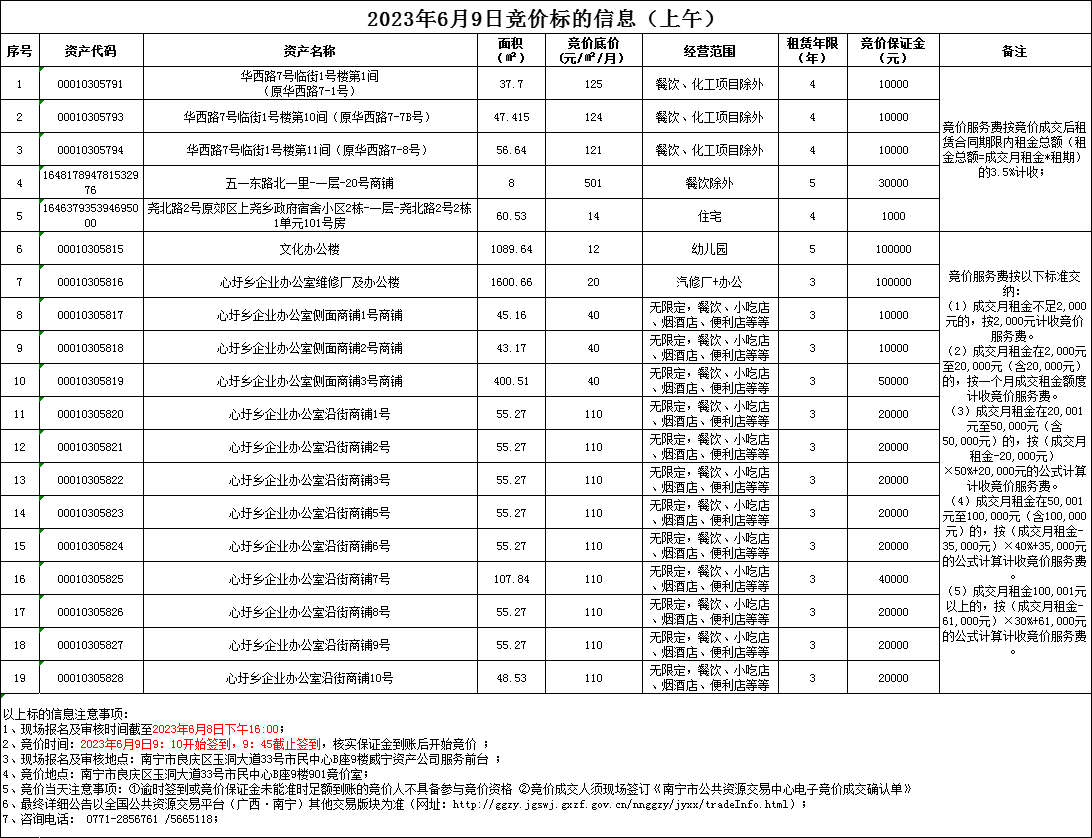2023年6月9日競價標的信息
